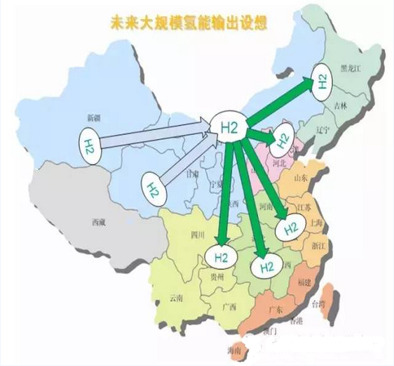 隨著技術(shù)和經(jīng)驗(yàn)的積累和成熟,在我國西部地區(qū),如新疆、甘肅、寧夏、內(nèi)蒙等地,可利用可再生能源大規(guī)模制氫。