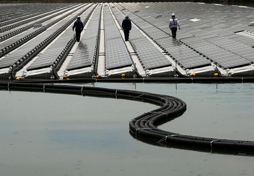我們也可以讓電池板漂浮起來(lái)。在澳大利亞南部的污水處理廠,太陽(yáng)能裝置已經(jīng)被安置在了污水水面上。2016年春季,日本東京東部水庫(kù)里的太陽(yáng)能電池組也將完工,屆時(shí)產(chǎn)生的電量足夠近5000戶(hù)家庭使用。這些電池板不僅耐腐蝕,還通過(guò)了疾風(fēng)模擬測(cè)試,以預(yù)防極端天氣。