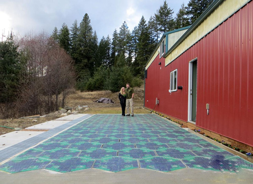 這對(duì)來(lái)自愛(ài)達(dá)荷州的夫婦正站在太陽(yáng)能路公司的概念原型前。