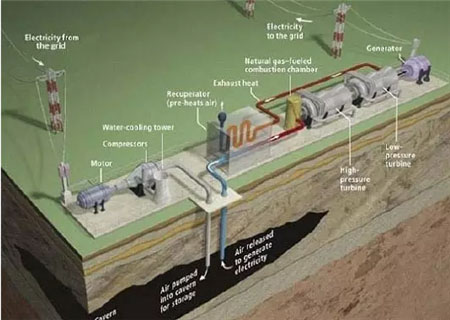 不足之處:一大缺陷在于效率較低。原因在于空氣受到壓縮時溫度會升高,空氣釋放膨脹的過程中溫度會降低。在壓縮空氣過程中一部分能量以熱能的形式散失,在膨脹之前就必須要重新加熱。通常以天然氣作為加熱空氣的熱源,這就導致蓄能效率降低。還有可以想到的不足就是需要大型儲氣裝置、一定的地質條件和依賴燃燒化石燃料。