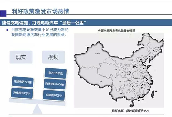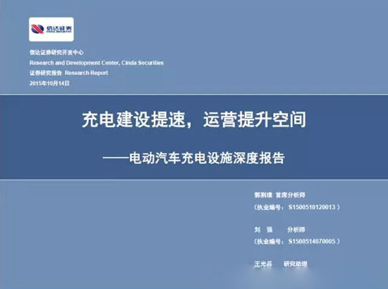 10月,關于加快電動汽車充電基礎設施建設的指導意見印發,提出到2020年要滿足超過500萬輛電動汽車的充電需求。按照車樁1:1匹配,每個充電樁2萬元的投入計算,將形成千億級市場。與之配套,《電動汽車充電基礎設施發展指南(2015~2020年》也已出臺。