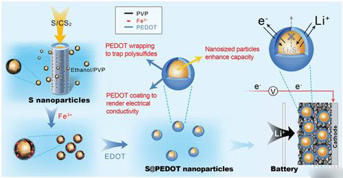 納米硫陰極材料可以帶來高達(dá)1672毫安/克的理論容量,這對于下一代電池來說很有吸引力。不過在實際應(yīng)用中,高電阻、低載荷活性物質(zhì)以及充放電時電解質(zhì)中間聚硫化物分解等問題仍然帶來了不小的挑戰(zhàn),這些問題會導(dǎo)致庫侖效率下降、電池容量損耗加快,同時也會發(fā)生自放電現(xiàn)象。