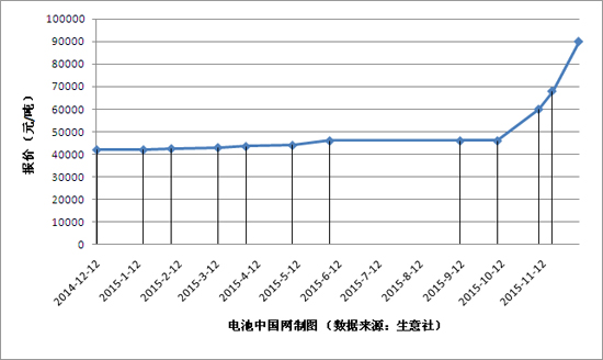 四川國鋰2014年12月-2015年12月工業級碳酸鋰報價趨勢變化圖