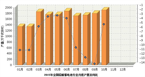 國家統(tǒng)計(jì)局最新公布的數(shù)據(jù)顯示,2015年9月中國鉛酸蓄電池產(chǎn)量為17,985,767.99千伏安時(shí),同比下降13.72%。2015年1-9月止累計(jì)中國鉛酸蓄電池產(chǎn)量150,646,332.22千伏安時(shí),同比下降10.47%。最新數(shù)據(jù)如下表所示: