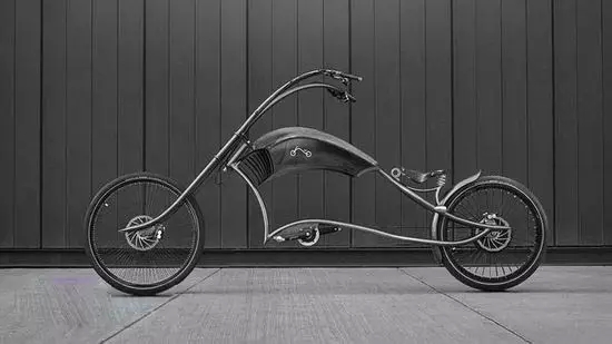 這輛電動自行車采用純手工打造,看到這優美的弧線都是熟手的鈑金師傅親手凹出,十足哈雷范,在上面完全可以騎出阿諾斯瓦辛格的感(cuo)覺(jue),同時車架由不銹鋼制成,重量55kg,根據自己對體形的自信程度,還可以懸著2600、2800、3000mm三種長度,真不知道3m長的電動自行車騎起來會是什么樣的體驗。
