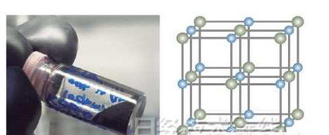左圖為合成的摻錳鈮酸鋰,其結構如右圖,是巖鹽型(NaCl型)結構氧化物。