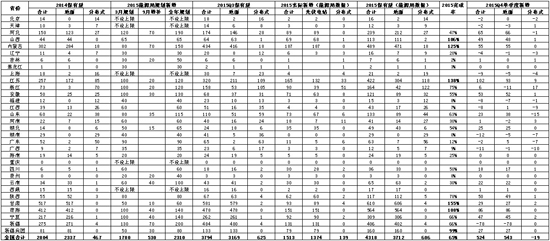 中東部省份除江蘇山西外均未完成指標