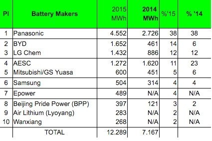 此外,中國還有幾位實(shí)力型選手也進(jìn)入前十排行,比如北京普萊德(Beijing Pride Bower)、洛陽Air Lithium(就是給康迪電動(dòng)車提供心臟的公司)已及萬向集團(tuán)分列2015年排行榜的8、9、10位。