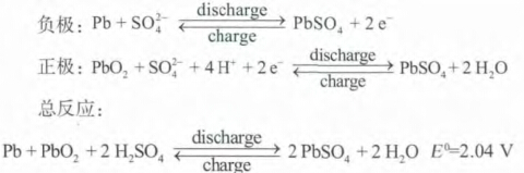 鉛酸電池是最早商業化的儲能電池體系,其主要由及其制成,是硫酸溶液。鉛酸電池狀態下,主要成分為,主要成分為鉛;放電狀態下,正負極的主要成分均為。用化學反應方程式表示為: