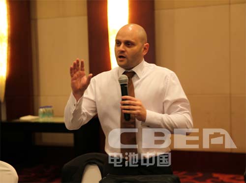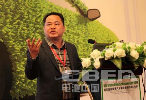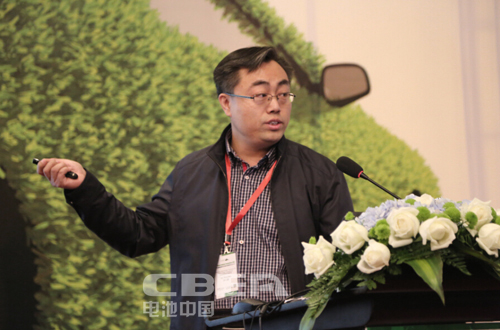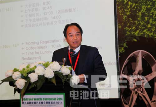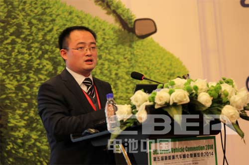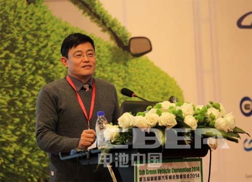 圖為國家863電動車重大專項動力電池測試中心主任王子冬作《圍繞電動車的商業模式開發動力電池系統》的主題演講